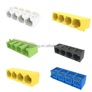 8P8C 1X4 Yellow Horizontal Type Round Pin FU Rj45 Modular Connector 8 Pin Network Ethernet Connector